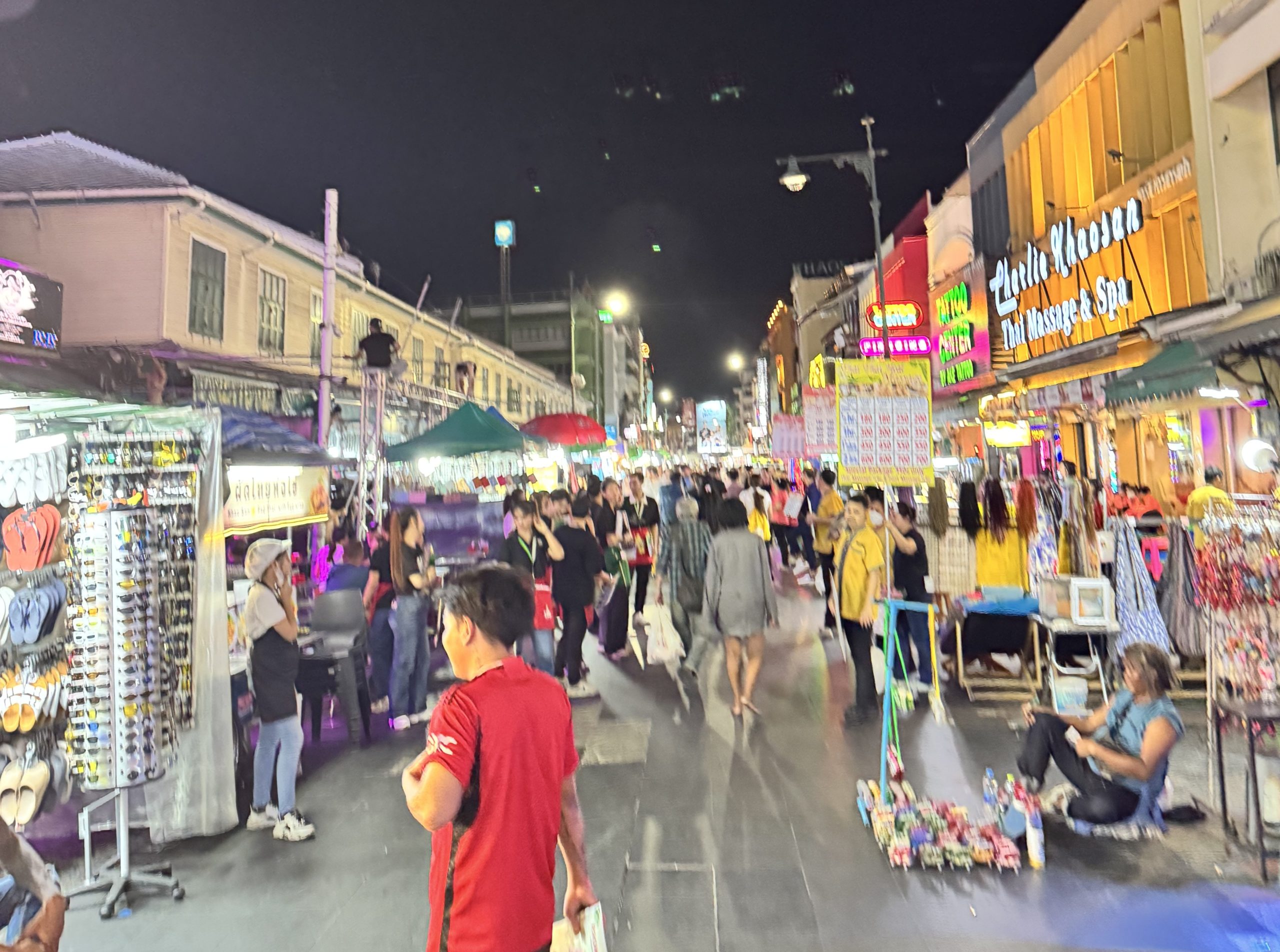 ここはカオサンロード沿いにある、賑やかな通りです。